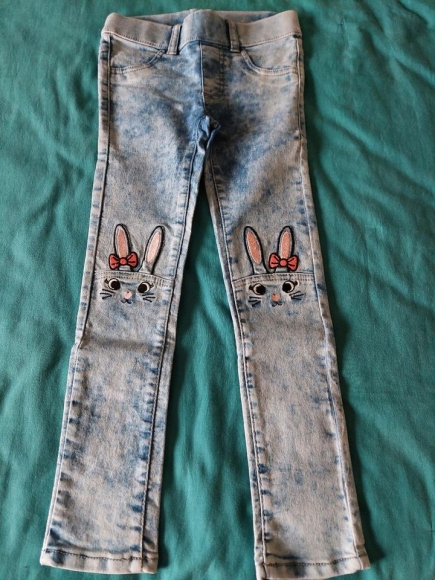 Verkaufe eine Neue Jeans in der 116 mit süßer Häschen Applikation. Versand als Büwa für 2,20€ möglich.