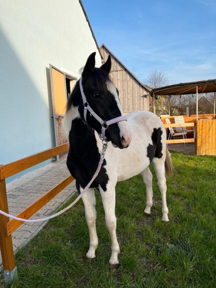 Wir verkaufen schweren Herzens unsere, Ende September 2023 geborene, Jährling Stute. Ihr Vater ist ein reinrassiger Paint, die Mutter soll wohl ein Connemara sein. Ihr Endmass wird bei ca 148-155 cm liegen. Sie ist super sozial, kennt Offenstall sowie Boxenhaltung, lässt sich total brav putzen, Hufe auskratzen sowie führen und auch Schmied ist kein Problem. Sie ist rundum unkompliziert.