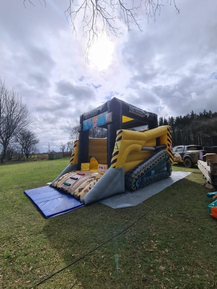 Diese große Hüpfburg bietet jede Menge Spaß für die Kleinen und bestimmt auch für den einen oder anderen großen Baggerfan