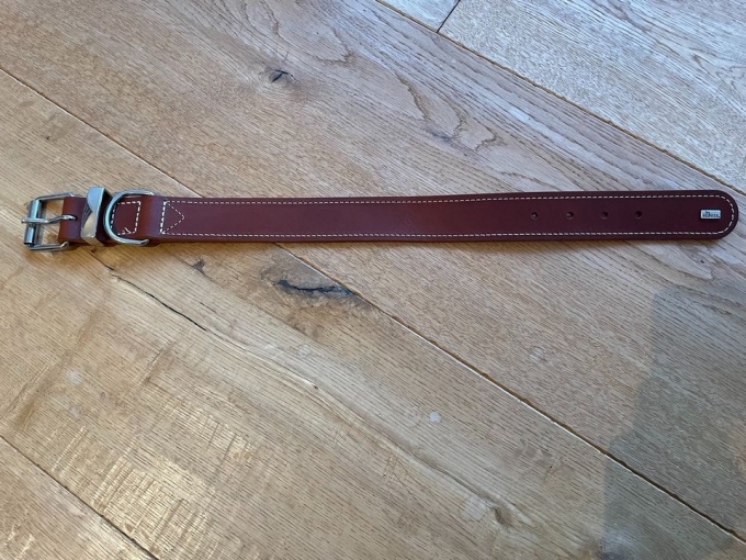 Wurde einmal kurz getragen, war aber leider zu breit für unseren Hund. Schönes Braun. Länge gesamt 52 cm. Versand als Warensendung möglich.