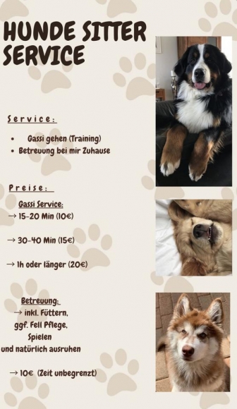Hi ich bin 17 Jahre alt, mache grade mein Abitur und möchte nebenbei etwas Geld verdienen. Ich biete Gassi, Training, und Betreuung für Hunde an. Ich liebe Tiere und am meisten liebe ich Hunde.