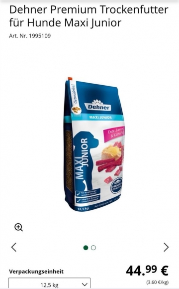 Hallo zusammen, ich biete hier einen 12,5 Kilo Hundefutter Sack zum Verkauf an. Dehner Maxi Junior Ente,Lamm &Kartoffel.