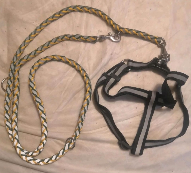 Verkaufe hier zwei Ausbildungssets bestehend aus Hundegeschirr und Hundeleinen mit Reflektoren und mehreren Hacken, siehe die Bilder. Alle Sets sind neu und unbenutzt, der Preis gilt pro Set.