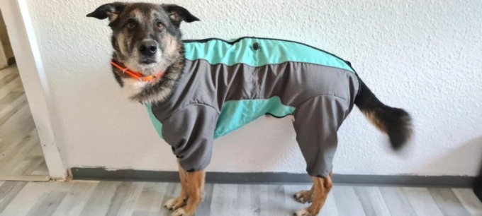 Hunderegenanzug 60cm – gut gepflegt, ideal für Schmuddelwetter