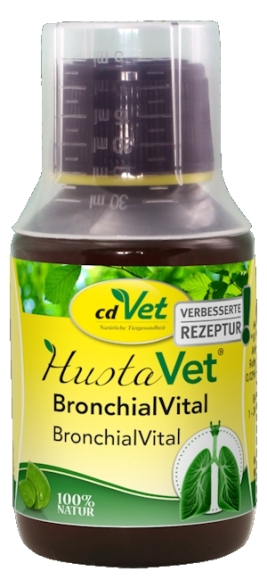 HustaVet BronchialVital ist ein flüssiges Ergänzungsfuttermittel zur ernährungsbedingten Unterstützung der Funktion der oberen Atemwege und der Atemwegskondition.