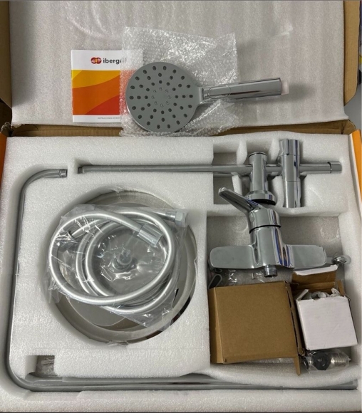 Ibergrif - Duschsystem mit Regendusche, Umstellung. Brauseschlauch, Handbrause, Brausehalter, Duschstange , Armatur, Chrom