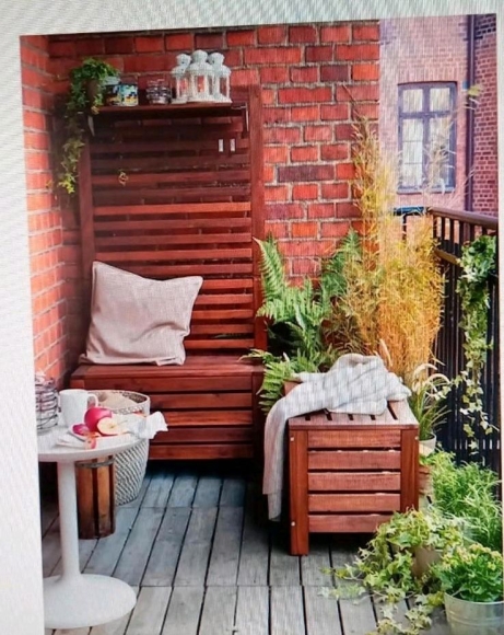 Ikea ÄPPLARÖ Sitzbank Banktruhe mit Sichtschutz Wandpaneel Holz