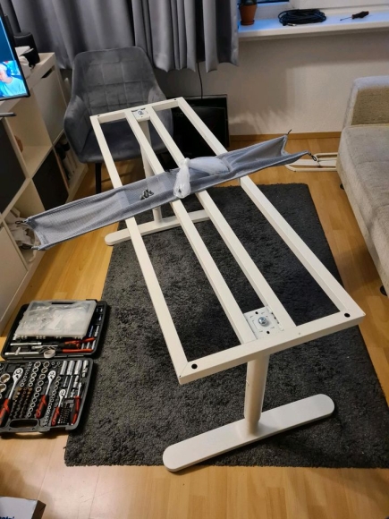 Verkauft wird das abgebildete Untergestell von Ikea mit der Bezeichnung "Bekant" mit den zugehörigen Schrauben und dem Kabelnetz.