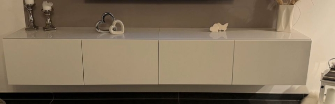 Ikea Lowboard. Weiß-Matt mit Glasplatten oben drauf. Keine Gebrauchsspuren.