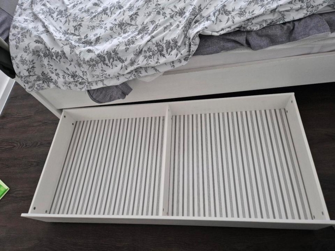 Ich verkaufe meine Bettkästem von unserem Hemnes Bett.Die Bettkästen haben einige Gebrauchsspuren sonst funktionieren die Rollen einwandfrei.Mann könnte Sie sicher mit einem weißen Stift retuschieren.4 Stück 2 Große und 2 Kleine.