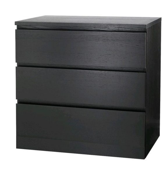Kommode mit 3 Schubladen, schwarzbraun, 80x78 cm mit Glasplatte