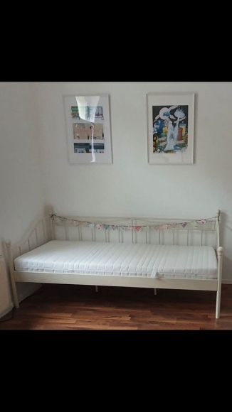Ikea Tagesbett weiß Metall mit Lattenrost und Matratze
