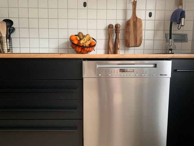 Einen Miele Geschirrspüler (10 Jahre Garantie) ein Glas Ceranfeld (Touchscreen) und eine Dunstabzugs Haube, dazu natürlich auch ein Backofen auf Augenhöhe.