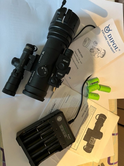 Biete hier mein Dipol 400 DNS mit Aufheller, 6 Akkus, Tragetasche und Adapter für ein 56er Glas.