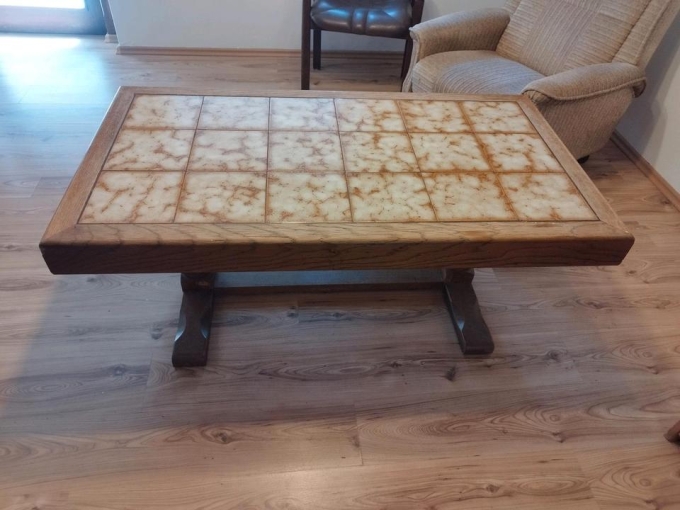Wohnzimmertisch mit Gebrauchsspuren, sehr stabil, massiv