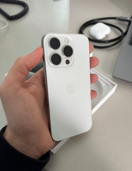 Ich verkaufe mein iPhone 15 Pro in der Farbe weiß Titanium mit 128 GB Speicher.