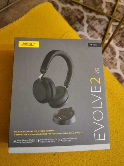 Verkaufe ich einen neu Jabra Evolve2 75 Wireless PC Headset mit Ladedock, 8-Mikro-Technologie - Dual-Foam-Stereo-Kopfhörer mit moderner aktiver Geräuschunterdrückung, USB-A Bluetooth-Adapter und UC-Kompatibilität - Schwarz.