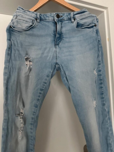 Jeanshose wurde gekauft, aber nicht getragen.