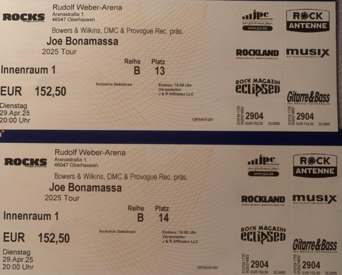 Joe Bonamassa Oberhausen, Reihe B plus Parken P8