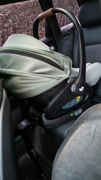 Joie Babyschale light green mit Ledergriff & Isofix Basis Eukalyp