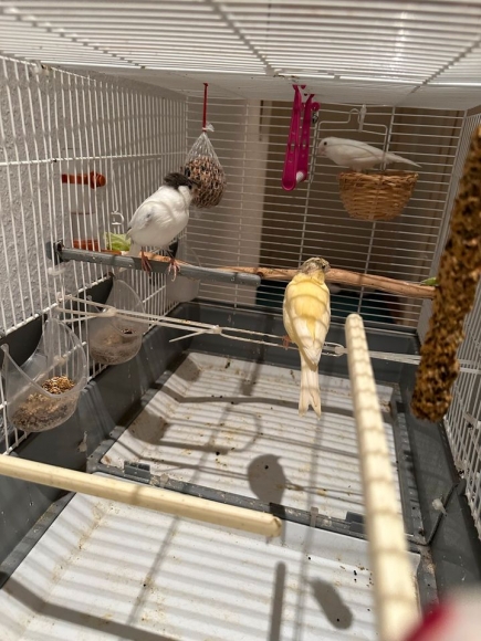 Drei Kanarienvögel männlich 2 und weibliche 1 mit Käfig zusammen