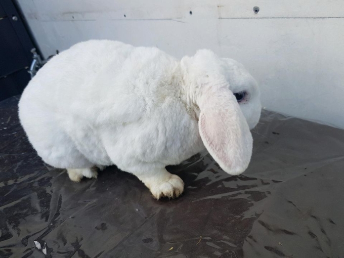 Kaninchen Männchen weiss mit blauen Augen abzugeben.