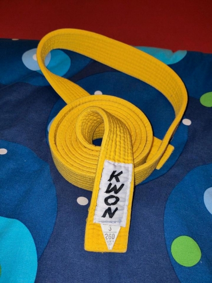 einen gelben Kapfsportgürtel aus 100% Baumwolle vom Hersteller Kwon.