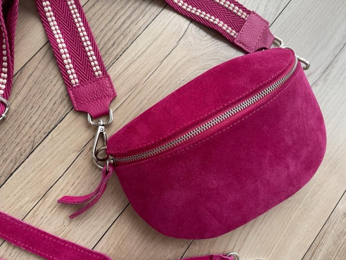 Wunderschöne Tasche NEU! In Velourleder pink mit 2 Umhängeriemen