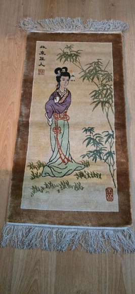 Wunderschönes Set aus drei antiken Wandteppichen im chinesischen Stil. Zwei Teppiche messen jeweils 115×60 cm, der dritte 126×60 cm.