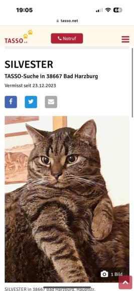 Bitte auch in die Garagen gucken und die Augen offen halten! Bei einer Sichtung bitte unter der Nummer: 0176 20 40 60 00 melden.