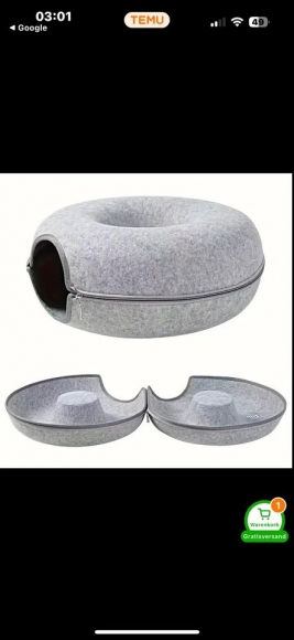 Ich verkaufe hier einen Donut für Katzen. Es ist wie Neu, ist Grau und hat einen Reißverschluß.