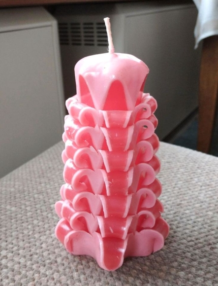 Die Kerze ist handgemacht, war sehr teuer und mir immer zu schade diese zu benutzen. Sie hat eine Höhe von knapp 15 cm.
