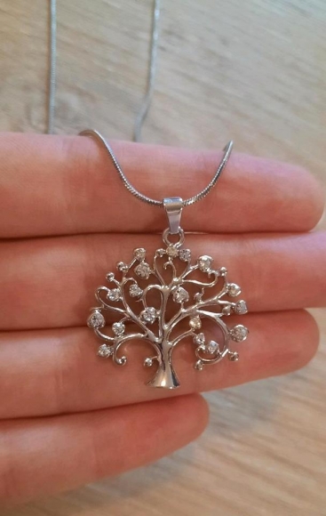 Verkaufe hier eine Kette mit Lebensbaum- Anhänger. In die Blätter sind kleine Steinchen eingefasst. NEU mit Etikett.