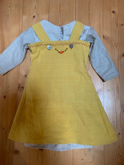 Ich verkaufe ein schönes Mädchen Kleid, 2 teilig ,aus reinem Leinen . Es ist mit der Maschine genäht und mit Handnähten versehen.