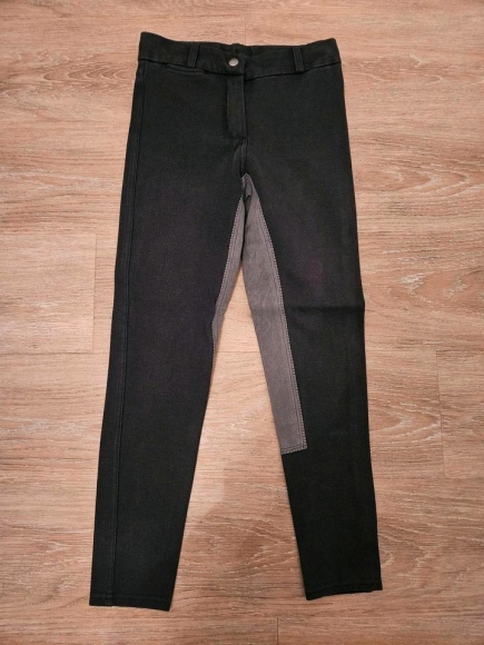 Gut erhaltene Kinder Reithose für den Sommer von Decathlon in grau/schwarz mit Kunstleder-Vollbesatz und verstellbarem Bund. Größe 143-152 cm.