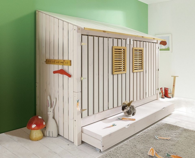 Kinderbett Abenteuer Hütte Bett 90 x 200 Zimmer Möbel weiß Holz