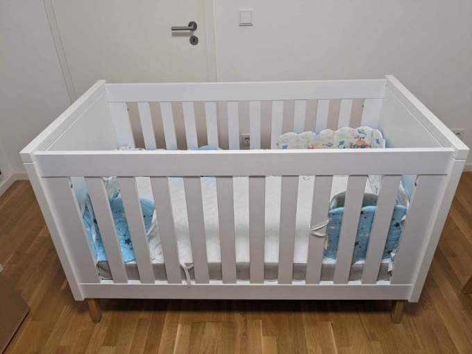 Hier verkaufe ich das Kinderbett meines Sohnes. Das Bett wurde 2020 gekauft und ist in nahezu perfektem Zustand. Im unteren Teil der vorderen Ecken gibt es einige Teile mit abgeplatztem Lack (siehe die letzte Foto). Ansonsten ist das Bett in einwandfreiem Zustand.