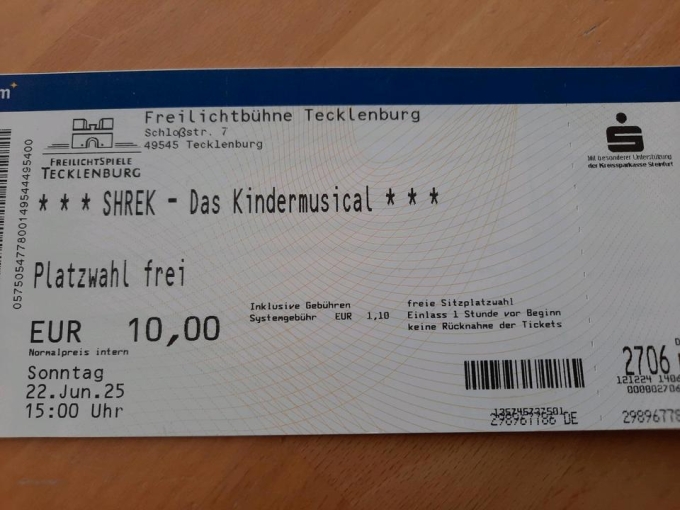 4 Karten für "Shrek - Das Kindermusical" auf der Freilichtbühne in Tecklenburg am Sonntag, 22.06.2025 um 15:00 Uhr