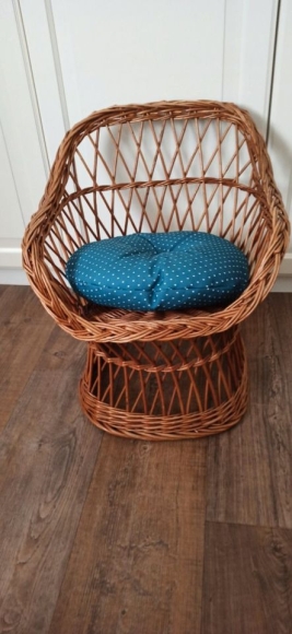Kinder-Rattan-Stuhl-Sessel mit rundem Ikea Kissen
