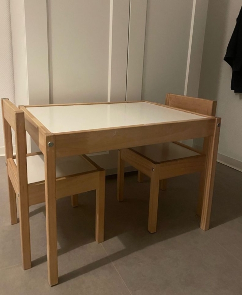 Biete euch einen Kindertisch mit 2 Stühlen an.