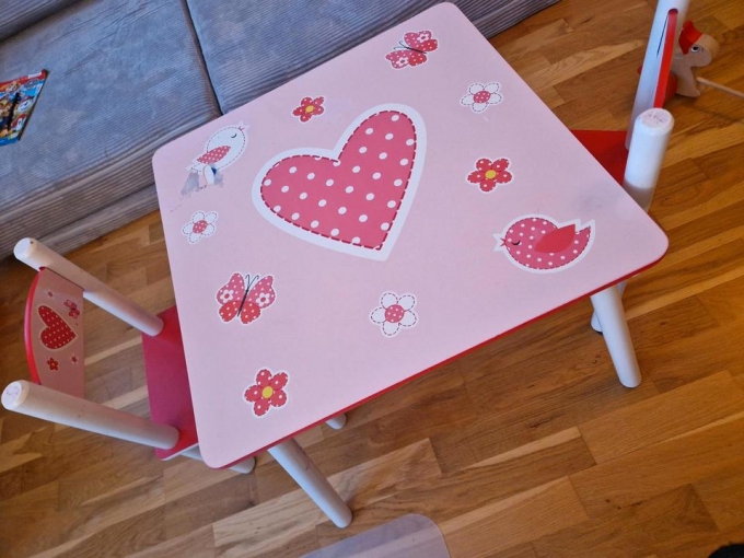 Wir verschenken Kindertisch mit 2 Stühlen. Alles noch einwandfrei zu verwenden, hat jedoch ein paar Gebrauchsspuren bzw. den ein oder anderen Sticker irgendwo kleben. Tierfreier Nichtraucherhaushalt, in 12459 Berlin abzuholen.