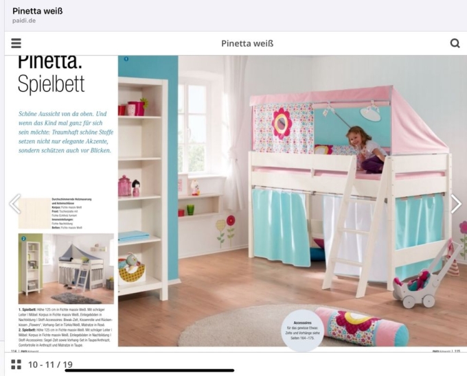 Wir verkaufen das Kinderzimmer unserer Tochter von der hochwertigen Marke „Paidie“. Serie Sylvie. Fichte weiß. Das Bett wie im original Foto inkl. dem Himmel. Diesen hatten wir aktuell abgebaut. Alles vollständig vorhanden in einem guten Zustand. Das Bett hat eine beschreibbare ,magnethaftende Tafel auf der Rückseite mit Korkpinnwand. Es sind zwei große Rückenkissen, wie auf dem Foto zu sehen, dabei. In der Rechnung ( siehe Fotos) ist alles aufgelistet. Zum Zimmer gehören eine Kommode, ein Standregal, ein Wandspiegel, eine Nachtkommode und 2 Wandregale dazu. Siehe Bilder original Paidi und unsere Bilder. Alles zum abholen in Seeon nähe Chiemsee.