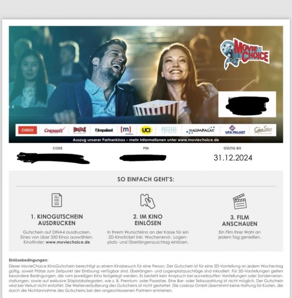 Biete hier Kino Gutscheine an für cinemaxx, Cinestar etc laufen am 31.12.2024 aus