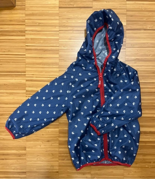 Die Jacke wurde vielleicht ein- bis zweimal getragen und lag sonst im Schrank. Sie ist absolut neuwertig. Man kann sie sehr klein falten und ganz praktisch in der Tasche auf der Rückseite verstauen. Diese wird mittels Klett verschlossen.