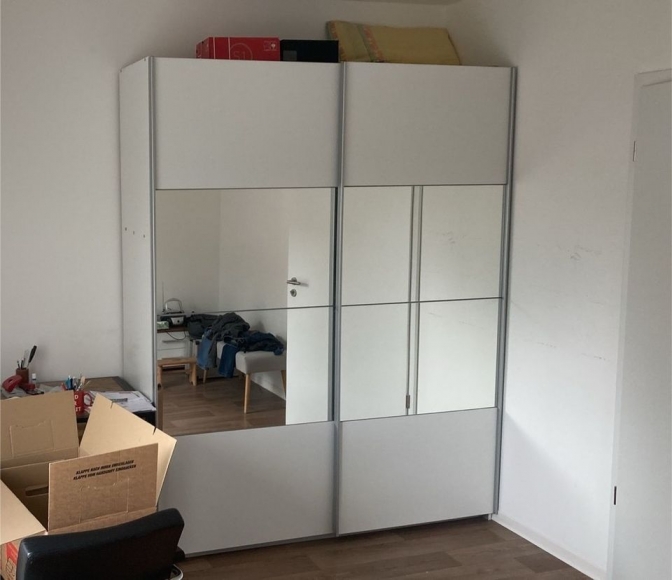 Biete großen Kleiderschrank mit Schiebetüren und Spiegel. Schrank ist bereits abgebaut kann aber leicht wieder aufgebaut werden.