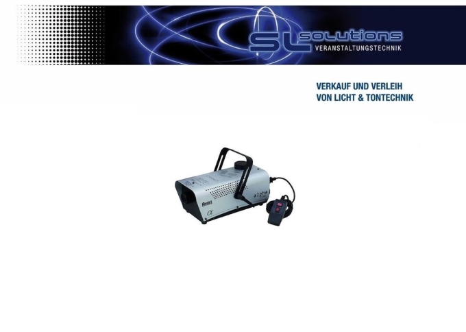 Wir bieten hier zum mieten eine kleine kompakte Nebelmaschine mit 700 Watt Leistung inkl. Fluid an.