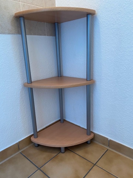 Kleines Eckregal mit chromfarbenen Standfüßen