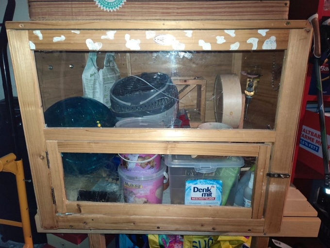 Biete gebrauchtes aber noch voll funktionsfähiges Gehege aus Holz für Hamster, Mäuse oder ähnliches an mit etlichen Zubehör, Futter, Leckerlis und Streue