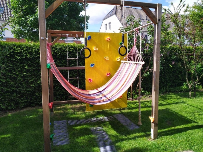 Turnringe, Seilleiter, Kletterseil und die Hängematte sind nicht dabei