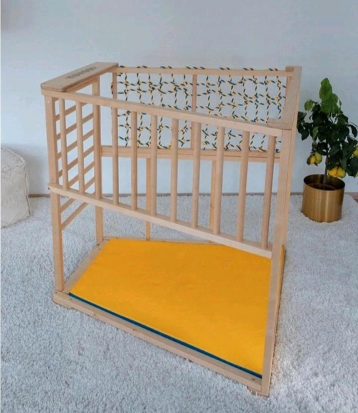 Zubehör: Kletterseil blau/gelb/weiß, Sicherheitsmatte wendbar blau/gelb, Scheibenschaukel unbenutzt (siehe Bild)